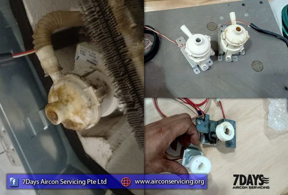 Replace Mitsubishi heavy float switch drain pump with cleaning drain pan in Serangoon